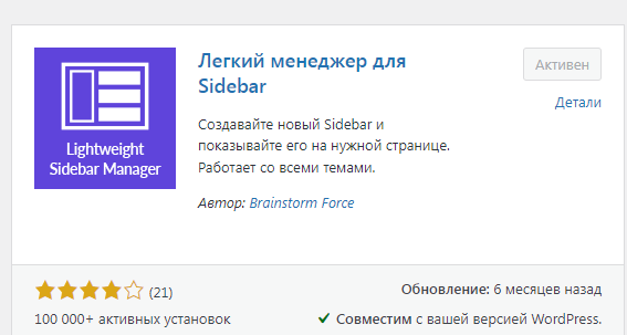 Бывают случаи, когда на сайте WP необходимо создать новую боковую панель (сайдбар). В вашей теме только один сайдбар на весь сайт, а нужно отобразить боковую панель с виджетами на отдельных страницах. Создать новых сайдбаров можно сколько угодно. Добавлене сайдбара не составит никакой трудности. Вы можете сделать это буквально за несколько минут с помощью плагина Sidebar Manager. Работает плагин со всеми темами. Только обязательно проверяйте на совместимость с вашей версией WP.