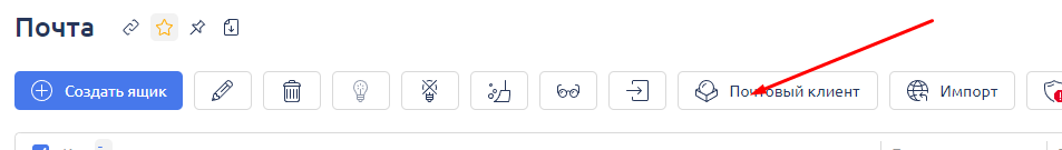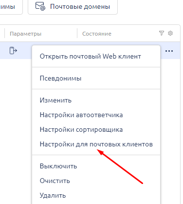 Для этого войдите в разделе *почта* в настройки почтового клиента (шестерёнка) и нажмите *настройки для почтовых клиентов*.