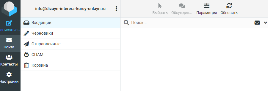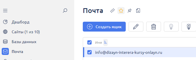 Проверяем заход через *почтовый клиент* и вот мы в своей почте для создаваемого сайта.