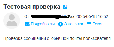 Для сложных сайтов, где есть регистрация пользователей можно создавать две или три почты. Для простого сайта нам хватит пока одной. Сделаем проверку почты с обычной элекронной почты. Почта работает исправно!