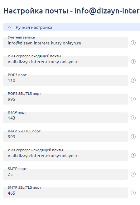 Обязательно скопируёте и сохраните эти данные. На любом сайте вы можете установить эти данные и осуществлять приём-отправку писем через почтовые серверы SMTP.