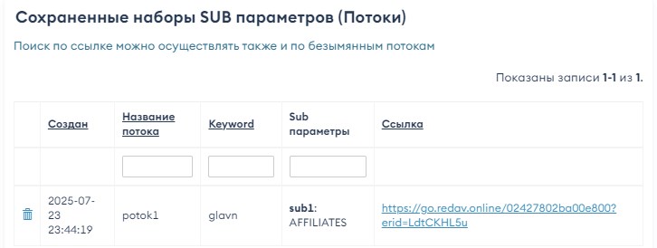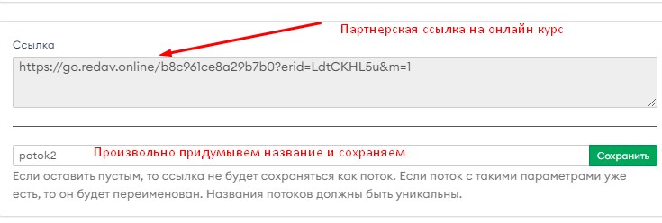 Получаем и копируем партнерскую ссылку. Создаем произвольно название потока. Это нужно, чтобы потом искать ваши ссылки и для статистики по переходам по данной ссылке.