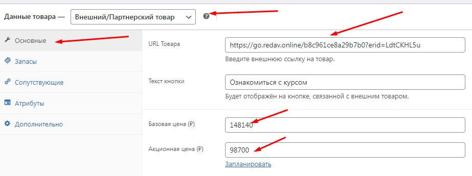 - Редактирование страницы курса (внешнего товара) с Woocommerce