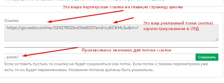 После генерации получаем партнерскую ссылку на главную страницу школы.