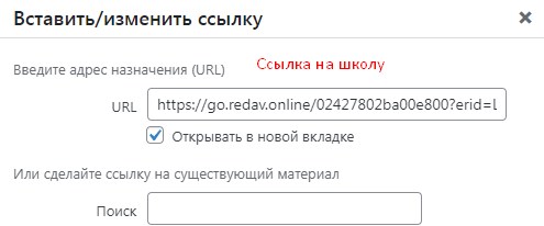 Эту ссылку нам нужно вставить на изображение или на баннер при редактировании описания школы (бренда). И обязательно вставить маркировку бренда в конце описания школы.